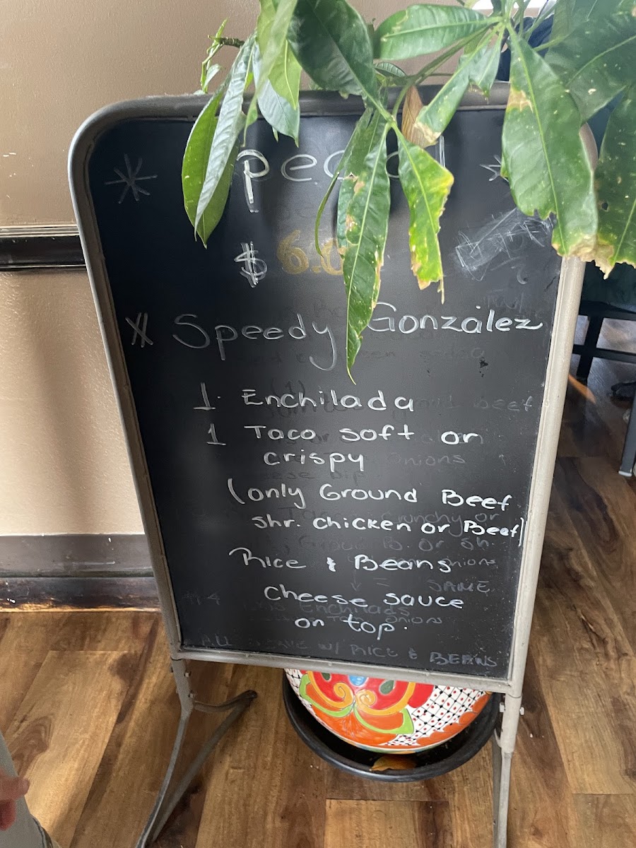Three cheese enchiladas topped with spinach and served with rice. Does not come with beans.
