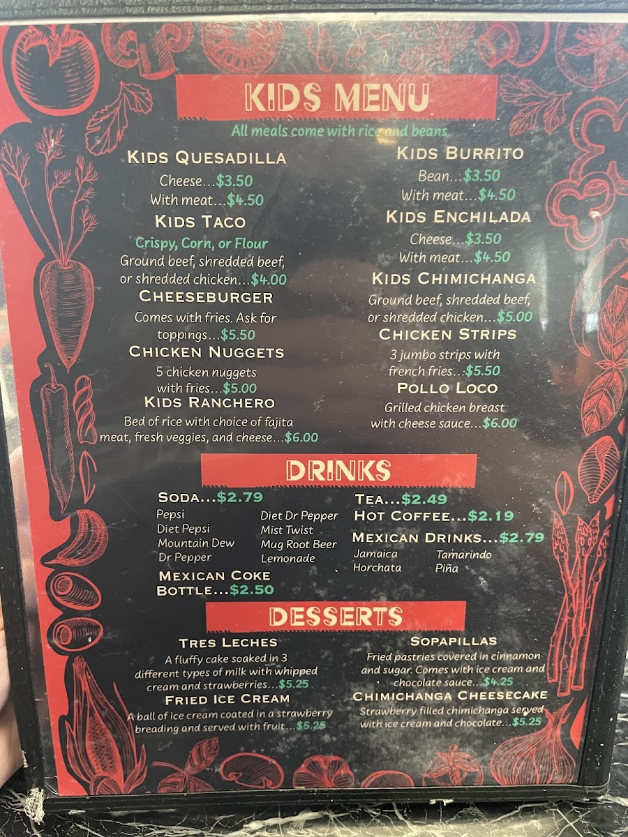 Choice of Jamaica water, Horchata, or Tamarindo.
